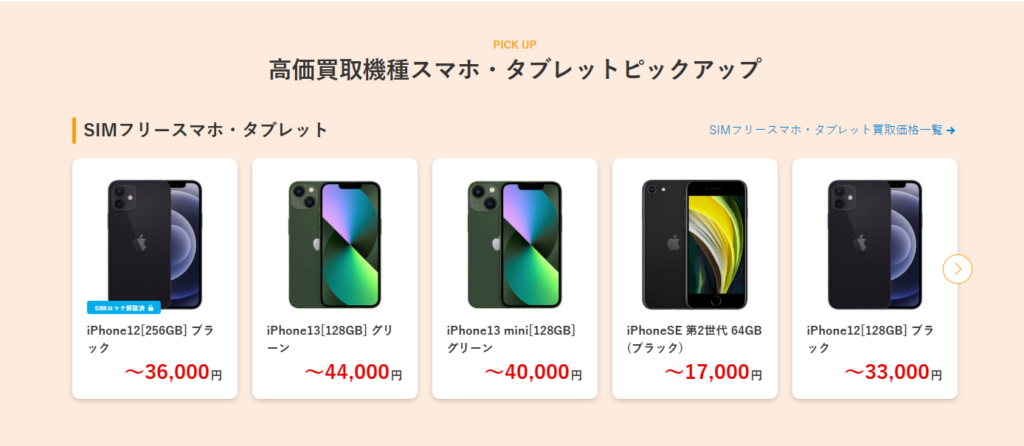 スマホに特化した査定体制:スマホ・タブレットの取り扱いに慣れた査定スタッフが対応。 まとめて売るほど査定額が上がりやすい仕組みです。