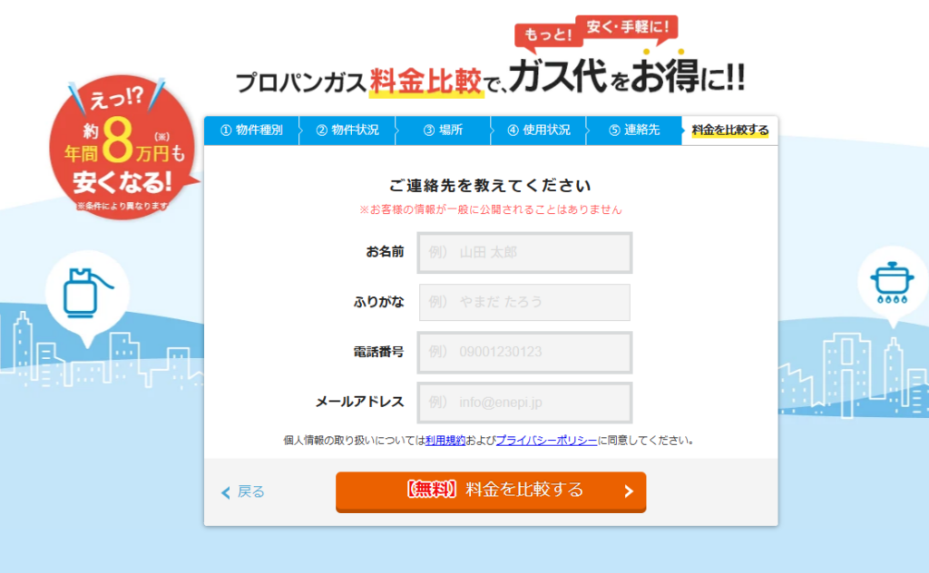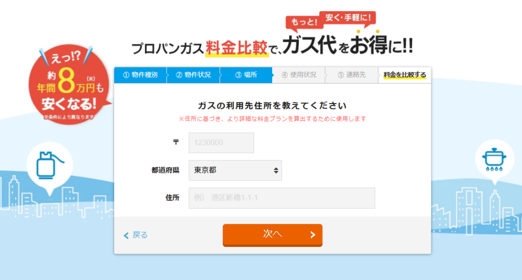 無料比較をするには、必要な情報を入力するだけ。たったこれだけで、あなたにぴったりのガス会社が見つかります。